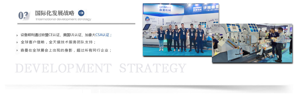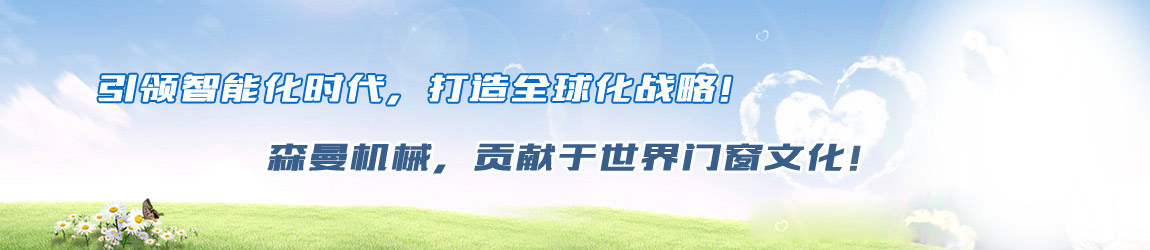 “森曼機(jī)械”作為全球門(mén)窗設(shè)備供應(yīng)商,本著"seaman"精神,勇立潮頭,拼搏創(chuàng)新,以爭(zhēng)做行業(yè)為目標(biāo),在行業(yè)前輩發(fā)展的基礎(chǔ)上,努力學(xué)習(xí),積極進(jìn)取。目前公司產(chǎn)品涵蓋塑料門(mén)窗設(shè)備、鋁合金門(mén)窗設(shè)備、鋁幕墻設(shè)備、鋁木復(fù)合門(mén)窗設(shè)備及中空玻璃設(shè)備五大種類,近百個(gè)品種。公司產(chǎn)品銷售至全國(guó)各地及東南亞、非洲、東歐、北美等幾十個(gè)國(guó)家和地區(qū)。在這個(gè)競(jìng)爭(zhēng)激烈的年代,我們正努力使我們的產(chǎn)品!